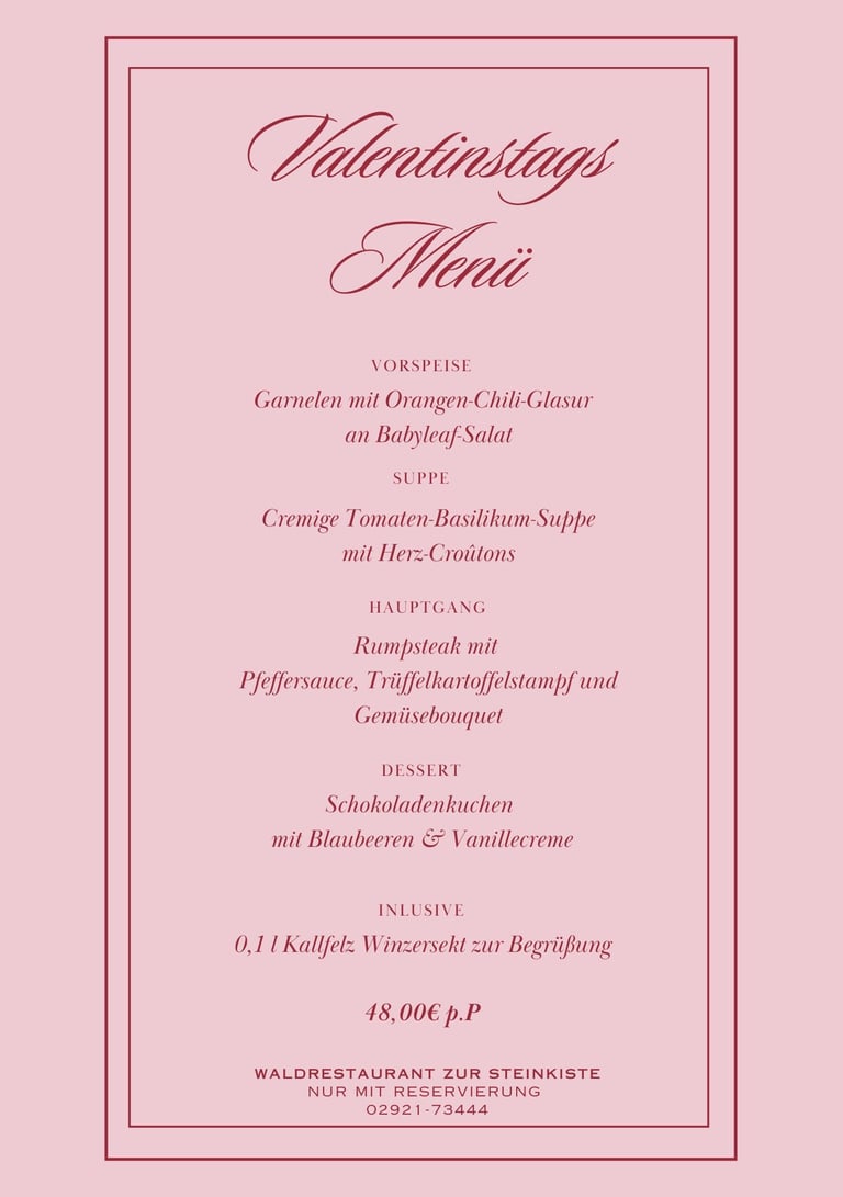 Valentinestagsmenü in der Steinkiste